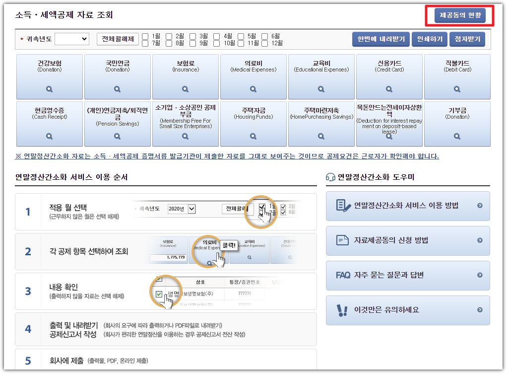 - 간소화서비스 화면에서 소득·세액 공제 증명 자료 확인