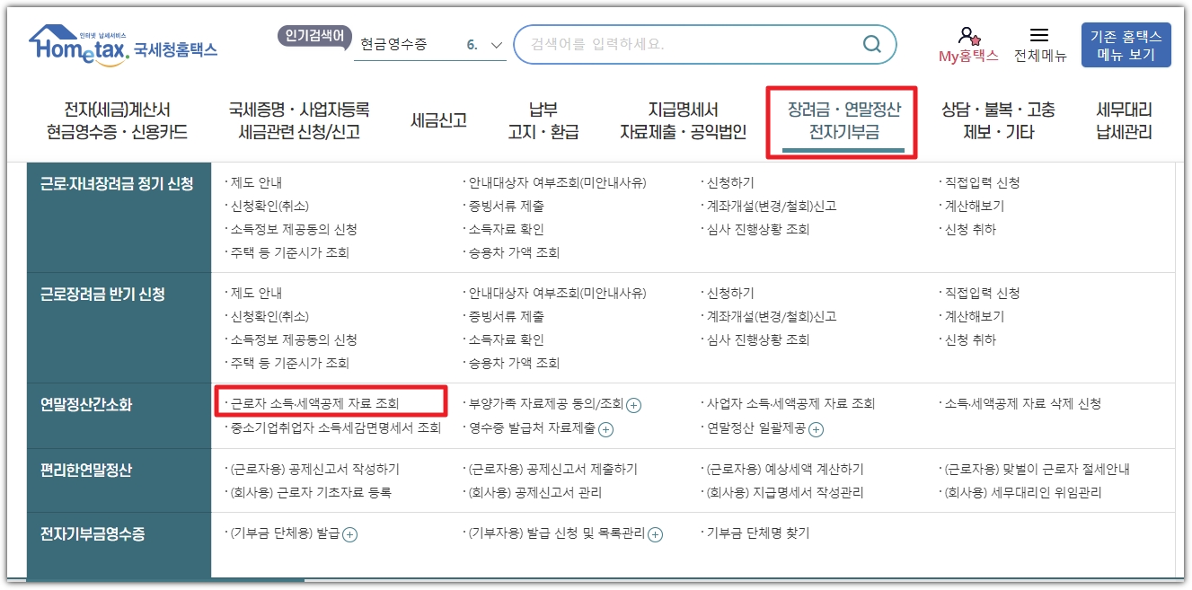 - 간소화서비스 화면에서 소득·세액 공제 증명 자료 확인